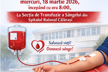 Centrul de Sănătate Călăraşi în colaborare cu Primăria orașului Călărași continuă promovarea și recrutarea donatorilor voluntari de sânge și de componente sanguine. În acest context toate personele eligibile sunt invitate miercuri, 18 martie 2026, începând cu ora 8:00, în cadrul Secției de transfuzie a sângelui […]